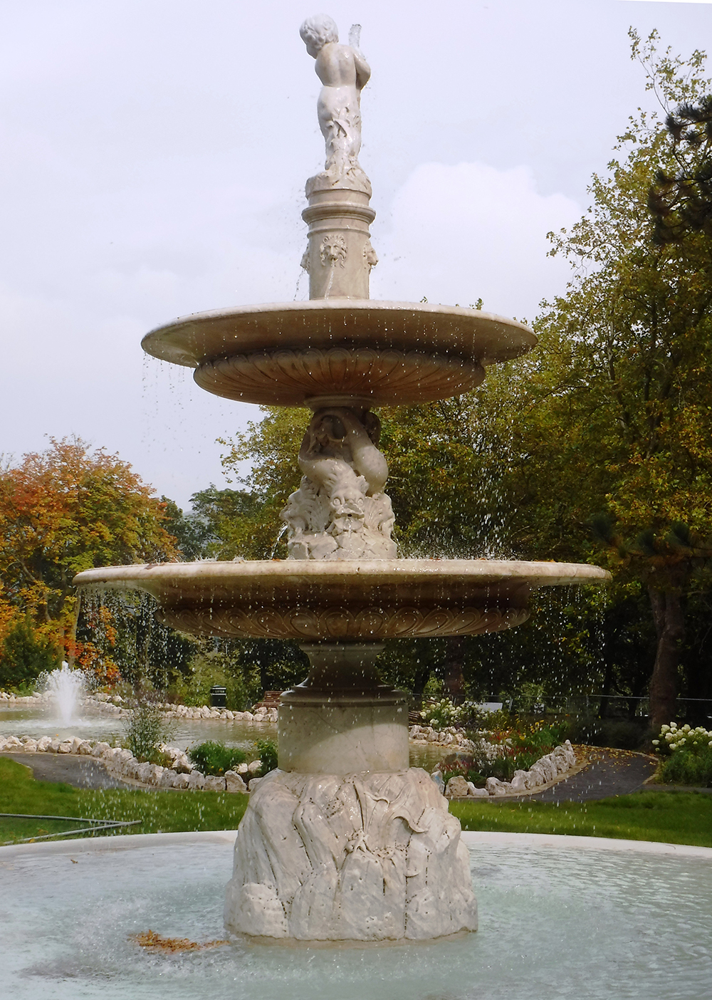 Two traditional Victorian tiered fountains restored as part of Bradford Council’s Heritage Lottery Fund project “Parks for People” at Cliffe Castle Park, Keighley.