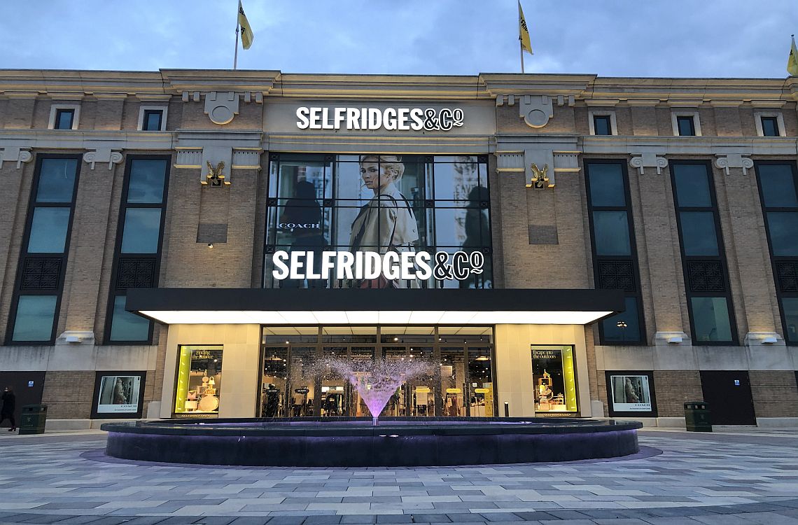 Passengers on the newly completed Metrolink line to the Trafford Centre can gaze at the display of the new water feature outside Selfridges or alight from the tram to stroll through a newly landscaped area and enjoy this water feature which is an 8m diameter granite-clad pool with multiple display elements.